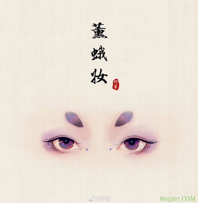 这个“薰蛾妆”的名字来源,不知道是否源于眉毛部分的处理呢?整体看下来是各种渐进的紫色,有一种神秘的美感。