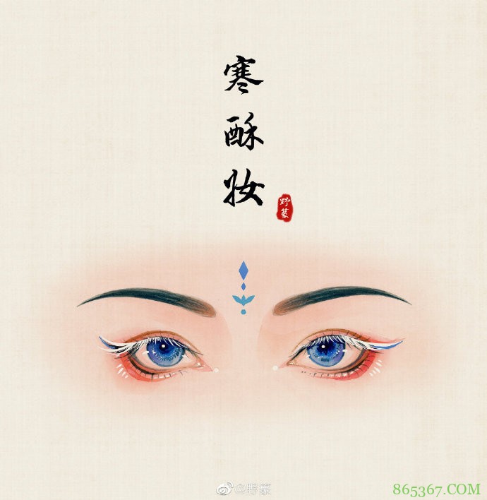 这个寒酥妆,给人的感觉倒是和赤焰妆截然相反,感觉一正一反,如果是艾莎女王这样的冰雪女王画上古风妆的话,大概就是这样的感觉吧?
