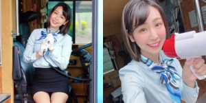 看封面照你可能会觉得这什么鬼?那是因为这位在辣妹片商kira★kira登场的新人樱华みゆ(樱华美优)有着166公分、九头身的高挑比例和一双又长又直的美腿,放眼艾薇界的最高水准就是桥本ありな(桥本有菜)。