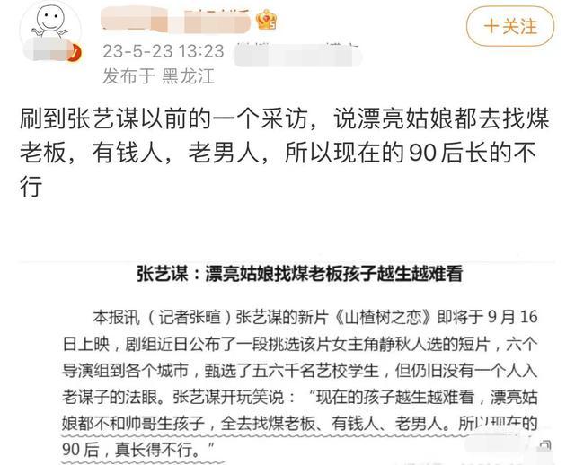 5月23日,有某大V媒体扒出了一段导演张艺谋过去的采访,他的一番争议性的话语,遭到了不少女性网友的抨击。