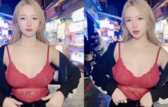 大年初一各位都去哪裡走春勒?白天拜年完晚上可以去夜市逛逛,最好是穿著大紅色最喜慶!JKF女郎「丁丁」就穿著紅色蕾絲爆乳內衣,直接現身在台北士林夜市,內衣外穿沒在怕!直接讓路人看到也跟著紅紅火火過新年耶。 (