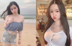 【众鑫娱乐】海邊玩水遇到「超大車頭燈妹」,「童顏巨乳的嬌小身形」有夠極品!
