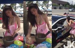 【众鑫娱乐】賣奶還是賣木瓜?爆奶正妹賣木瓜 搖頭拌食材…北半球快要「彈出來!」