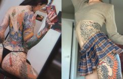 刺龍刺鳳整件穿上身,不用露臉、不用眼神示意的霸氣,讓人看一眼就忍不住腿軟,有種「大哥的女人」碰不得、惹不起的危機意識。看著眼前妹子身上濃濃亞洲味的刺青,是不是覺得有些熟悉、有些親切呢?!本尊曝光絕對會讓你們很驚喜~ 這身材…尤其是渾圓蜜翹臀,似乎暗示眼前妹子身上有著歐美先天基因優勢!沒錯~眼前這位「人中龍鳳」的刺青妹叫做《Hellcat Nat》。以刺青模特兒身分起家並活躍於社群平台的她,雖然刺青有著濃濃的東方味,但卻是個貨真價實的美國妞。 有別於歐美的刺青,《Hellcat Nat》背後一路延伸到大腿的東方味紋身圖騰,讓她個人特色更加鮮明。加入SuicideGirls後更成為該平台人氣刺青辣模之一。 IG:hellcatnat_