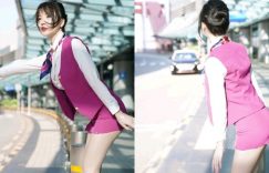 【众鑫娱乐】澳門機場門口出現「美腿空姐」,超短制服裙秀雪白美腿,正面還是巨乳正妹! …