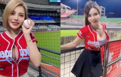 亞錦賽台日冠軍賽大家有沒有看啊?就算不去現場也會關注一下轉播吧~畢竟我們台灣可是地主隊,啟用大巨蛋的同時就迎來了這麼盛大的比賽,超多人躍躍欲試,許多球迷都到現場觀看了呢!JKF女郎「肝連妹(周苗苗)」更是味全龍的忠實粉絲,連續幾次比賽都到現場加油,穿著火辣秀出前凸後翹的好身材,讓球迷也順便一飽眼福! (
