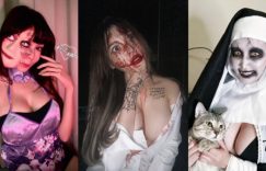 昨天是一年一度的萬聖節,大家有去參加變裝派對嗎?許多JKF女郎也特地花心思變裝和粉絲同樂,精選幾位今年扮鬼的JKF女郎,她們一個比一個恐怖的裝扮,但卻又不忘展現火辣身材,明明這麼可怕卻又擋不住燃起的情慾,怎麼會有這麼複雜的情緒呢? 四月桐April扮成爆乳鬼修女,臉上畫了相當可怕的妝,但視線一往下,就看到飽滿的美乳暴露在空氣中,E罩杯的上圍果然不是蓋的啊!四月桐April手裡還抱著一隻貓,增添了一點俏皮感,讓粉絲看了也不那麼恐怖。