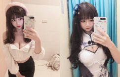 【众鑫娱乐】甜美大眼萌妹倩倩是「童顏巨乳」 開胸旗袍大爆白皙嫩乳