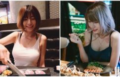 【众鑫娱乐】好辣!爆乳甜心吃烤肉,渾圓胸型快炸裂,一彎腰就露出傲人深溝!