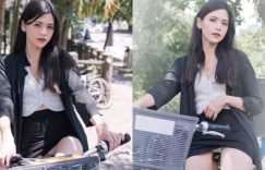 【众鑫娱乐】單身正妹OL「瞳瞳」穿窄裙騎共享單車,小褲褲意外露出被路邊工人看光!