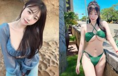 現在的比基尼設計越來越狂啦,各種款式顏色都有,特別是當妹子上圍很有料的時候,就會有各種東南西北半球的美景可以欣賞!JKF女郎「小隻馬米米(林可禹)」先前就穿比基尼上街玩耍,綠色的交叉綁帶設計,只有超迷你的布料遮擋在胸前,讓她那對H罩杯的豪乳下緣直接彈出,渾圓的「人字奶」一覽無遺~ (